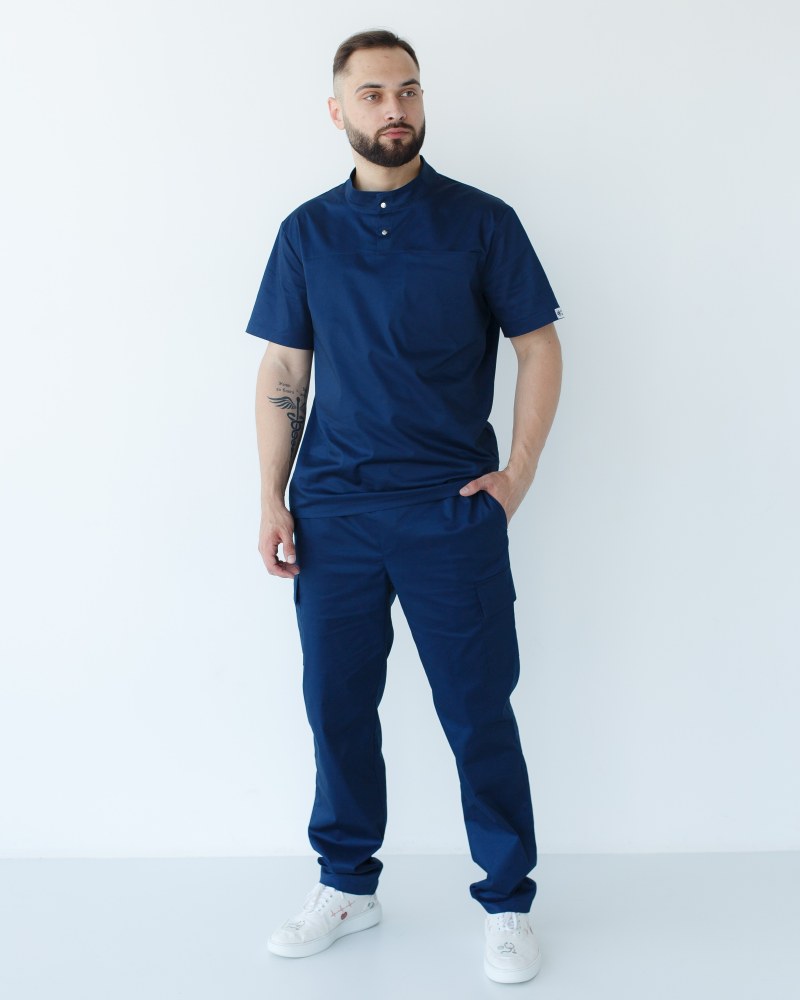 Мед костюм мужской DENVER (Денвер) —это удобный мужской костюм-двойка, который состоит из медицинской рубашки с коротким рукавом и брюк-карго. Рубашка имеет прямой силуэт, дополненный короткими рукавами, левый декорирован брендированной нашивкой. Воротник-стойка и неглубокий разрез горловины застегивается на две кнопки. На лицевой стороне расположился декоративный шов, в котором спрятан функциональный карман.