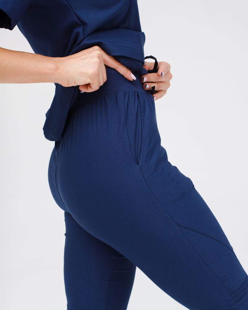 V-образный вырез рубашки, джоггеры на удобной резинке с завязками, удобная длина изделий. Важное из преимуществ — эластичная ткань премиум сегмента, которая не мнется и тянется во все стороны.