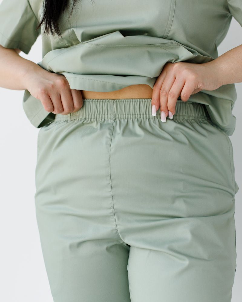 Женский хирургический костюм «Топаз» состоит из рубашки с короткими рукавами и брюк классического фасона. Медицинская рубашка полуприталенного кроя дополнена фигурным вырезом горловины. Она не сковывает движений и позволяет чувствовать комфорт даже во время активной смены. На лицевой стороне сорочки медицинской женской «Топаз» расположился вместительный карман-кенгуру. Брюки медицинские женские от костюма "Топаз" – прямые, лицевая сторона декорирована строчками. Женские медицинские брюки от костюма имеют высокую линию талии, дополненные широкой эластичной резинкой, закрепленной параллельными швами.