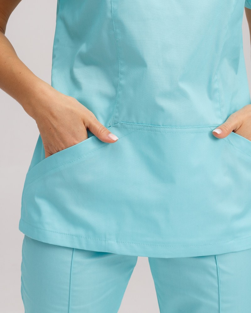 Женский медицинский костюм «Топаз» — это базовая модель медицинской униформы женской. Это медицинская одежда, купить недорого которую вы можете на нашем сайте, подходит как для врачей и младшего медицинского персонала, так и для мастеров сферы красоты.