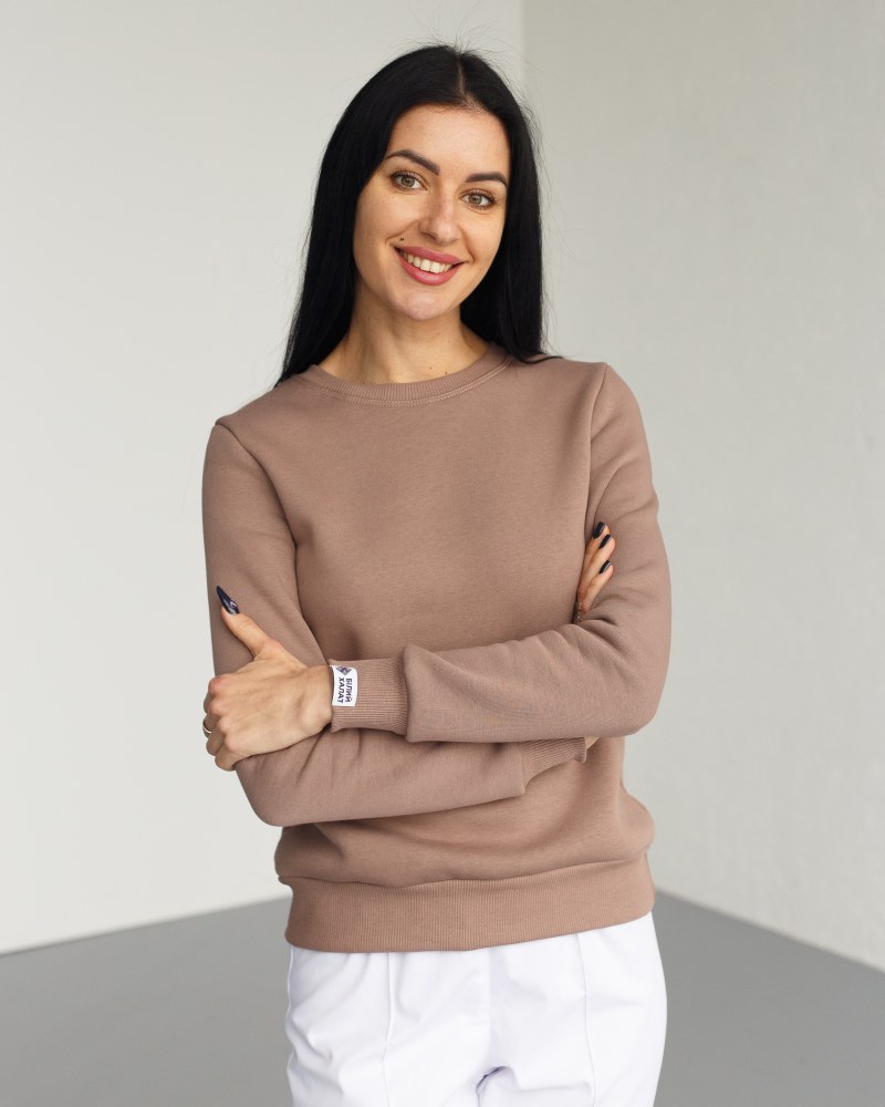 Медицинский утепленный свитшот женский Аляска темно-бежевый р. 2XL, "БЕЛЫЙ ХАЛАТ" 364-435-842