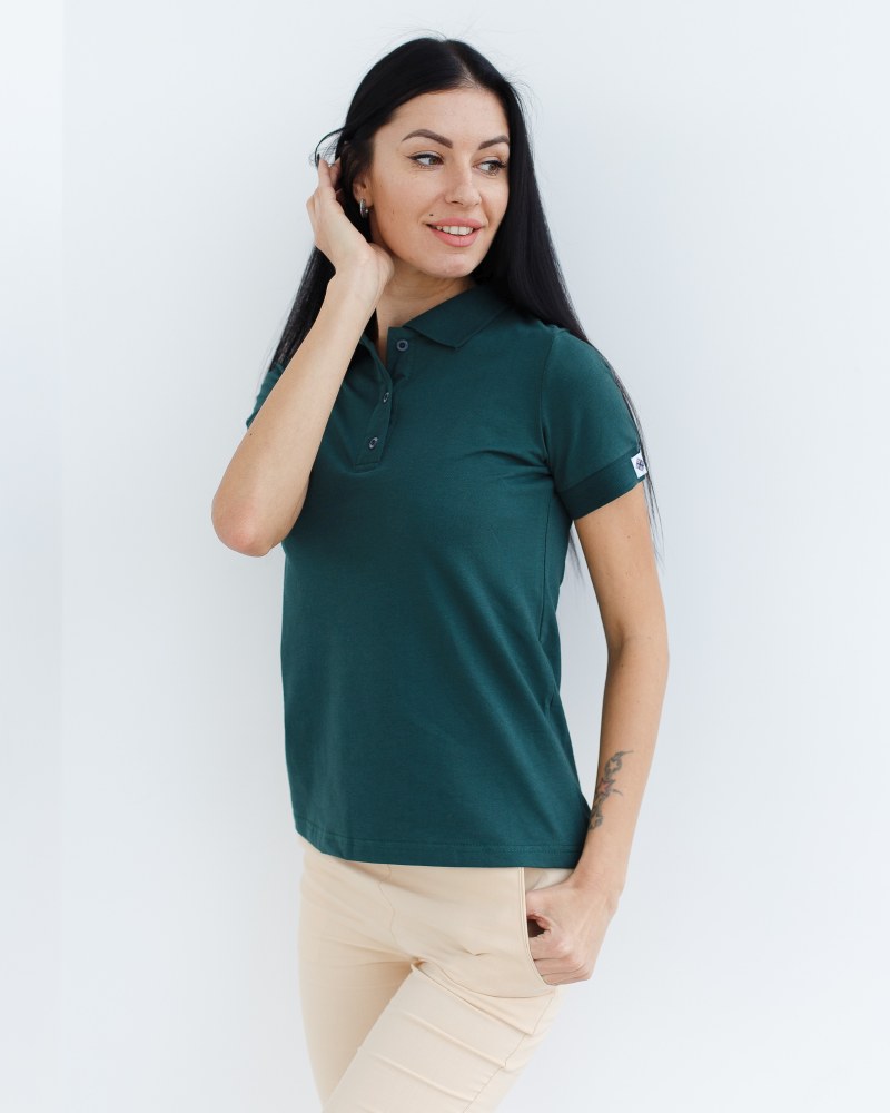 Медицинское поло женское темно-зеленое р. L, "БЕЛЫЙ ХАЛАТ" 147-430-677