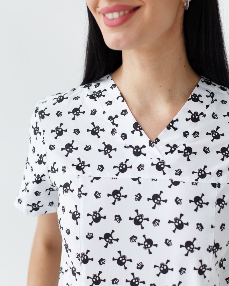 Купить Медицинская рубашка женская Топаз принт черепа белые р. 50, "БЕЛЫЙ ХАЛАТ" 164-324-666,, вы сможете в нашем интернет магазине limonad с доставкой по всей Украине в том числе и Киев, Днепр, Одесса, Харьков, Запорожье, Одесса, Львов и многие другие населенные пункты.