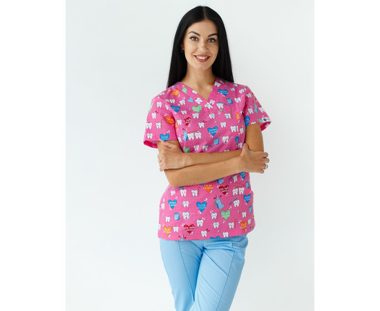 Медицинская рубашка женская Топаз принт Teeth pink р. 52, "БЕЛЫЙ ХАЛАТ" 126-337-623