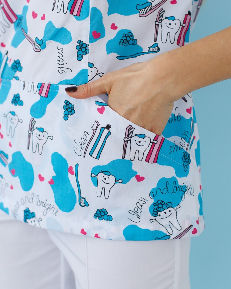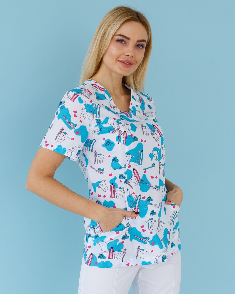Медицинская рубашка женская Топаз принт Teeth Smile р. 50, "БЕЛЫЙ ХАЛАТ" 126-324-626