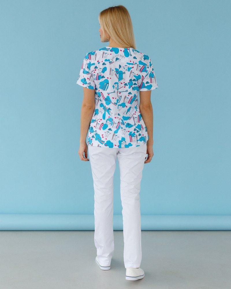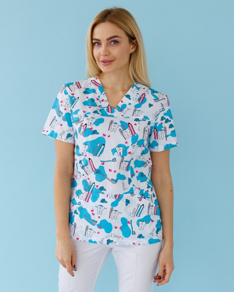 Медицинская рубашка женская Топаз принт Teeth Smile р. 54, "БЕЛЫЙ ХАЛАТ" 126-324-626