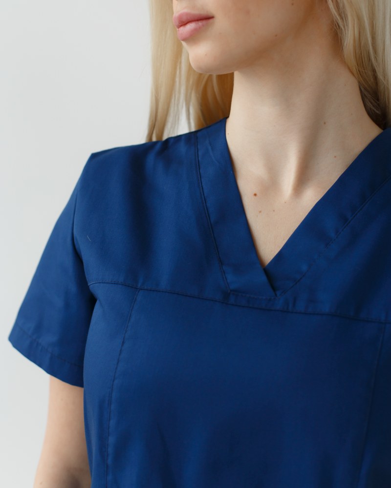Однотонный медицинский верх «Топаз» — это оптимальная одежда для врачей, которые ценят удобство униформы наравне с современным фасоном.