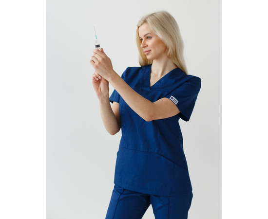 Однотонный медицинский верх «Топаз» — это оптимальная одежда для врачей, которые ценят удобство униформы наравне с современным фасоном.