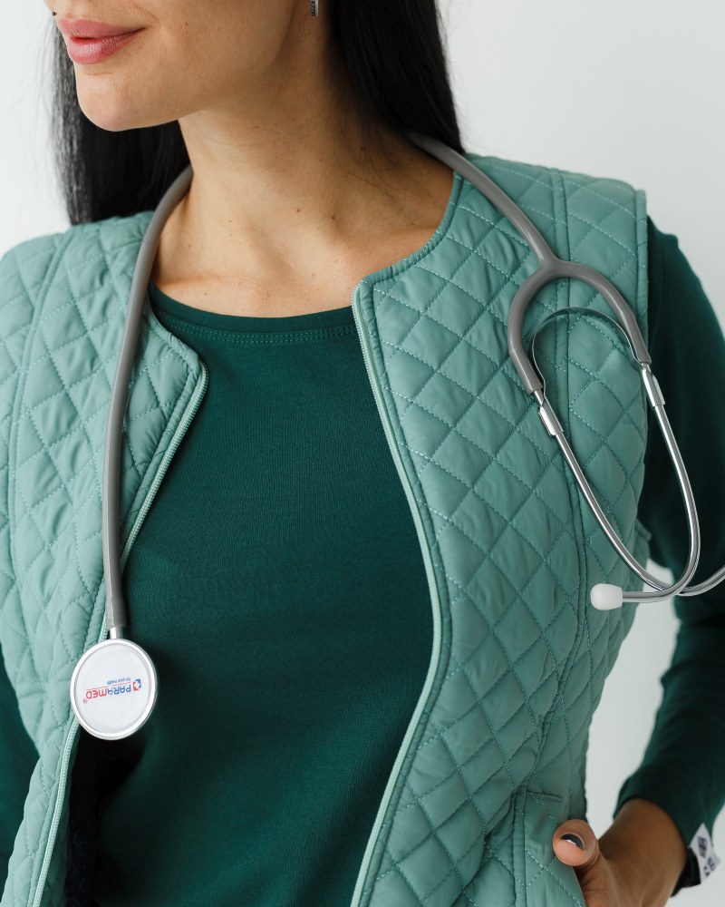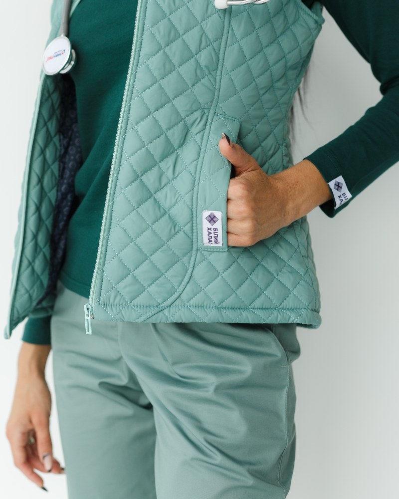 Медицинская утепленная жилетка женская Женева оливковая р. 48-50, "БЕЛЫЙ ХАЛАТ" 366-327-844