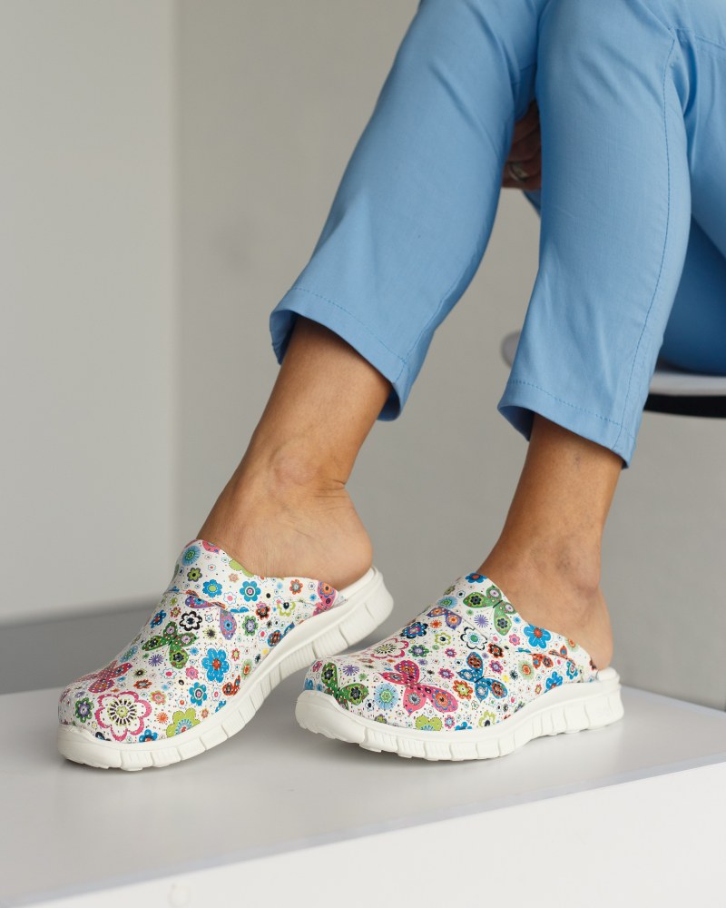 Медицинская обувь женская сабо с подошвой Lite имеет широкую закрытую верхнюю часть с объемным носком, в котором пальцы ног свободно двигаются. Перфорация носка медицинской обуви обеспечивает движение воздуха и отвод влаги, ноги не потеют. Такая медицинская обувь для женщин выглядит стильно за счет дизайнерских тематических принтов, которые легко впишутся в ваш рабочий гардероб. Медицинская обувь сабо с подошвой Lite легкая, пластичная, не ограничивает движений и повторяет форму стопы во время ходьбы. Если вы желаете купить медицинские тапочки в которых забудете об усталости в ногах — женские медицинские сабо с подошвой Lite лучший вариант для вас.