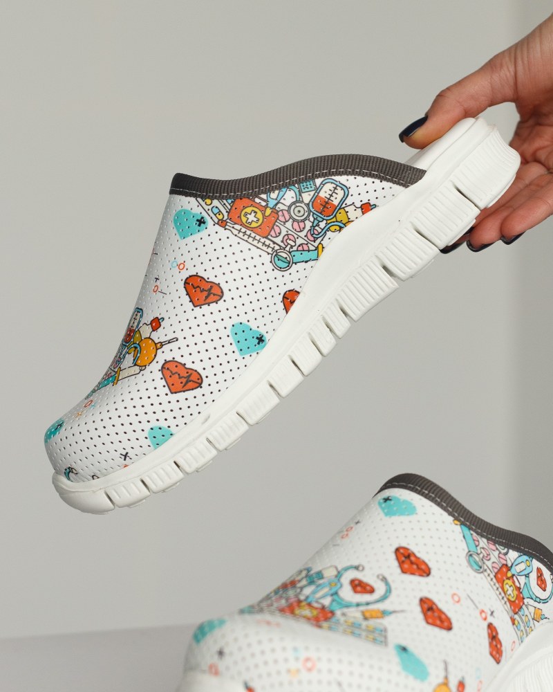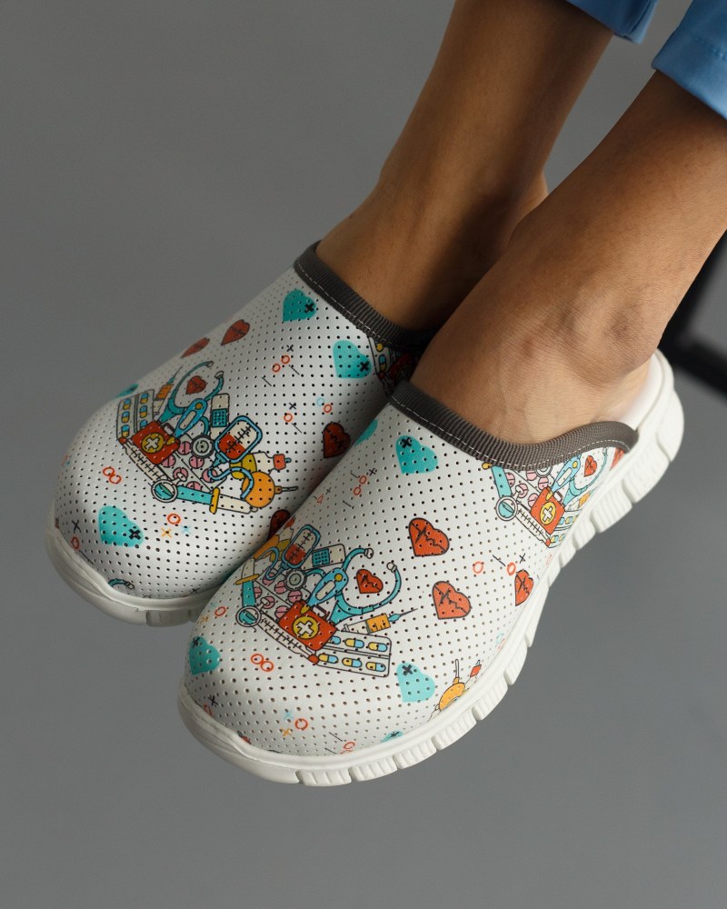 Медицинская обувь женская сабо с подошвой Lite имеет широкую закрытую верхнюю часть с объемным носком, в котором пальцы ног свободно двигаются. Перфорация носка медицинской обуви обеспечивает движение воздуха и отвод влаги, ноги не потеют. Такая медицинская обувь для женщин выглядит стильно за счет дизайнерских тематических принтов, которые легко впишутся в ваш рабочий гардероб. Медицинская обувь сабо с подошвой Lite легкая, пластичная, не ограничивает движений и повторяет форму стопы во время ходьбы. Если вы желаете купить медицинские тапочки в которых забудете об усталости в ногах — женские медицинские сабо с подошвой Lite лучший вариант для вас.