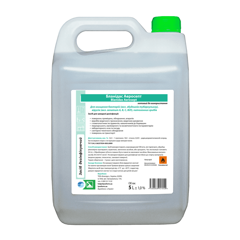 Дезинфицирующее спиртосодержащее безальдегидное средство Бланидас Аэросепт 5000 мл, Blanidas
