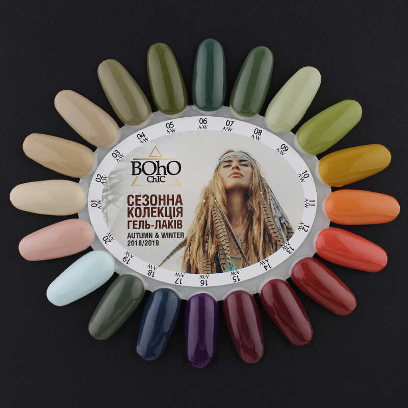 Гель-лаки Boho Chic в роскошной осенне-зимней лимитированной коллекции Autumn & Winter - это удивительно тонкая и профессиональная подборка самых актуальных сезонных оттенков, которые влюбляют в себя с первого взгляда. Мягкость и глубина, насыщенность и нежность, особый характер и совершенная красота - новые цвета невероятно гармоничны и волшебным образом перекликаются с природной оттеночной гаммой осени и зимы. Они лаконичны и изысканны, роскошны и неповторимы. С ними так легко сделать декоративный маникюр трендовым и модным, создать эффектный нейл-дизайн для повседневности и праздника. Цвета гель-лаков Boho Chic (Бохо Шик) Autumn & Winter плотные, их пигментация оптимальна, на ноготках смотрятся очень стильно и дорого. Качество этих профессиональных покрытий высокое, нанесение за счет укороченного формата кисточки легкое и приятное, носка долговечная и беспроблемная. Boho Chic Autumn & Winter - идеальное решение для шикарного осенне-зимнего маникюра!