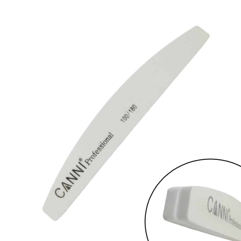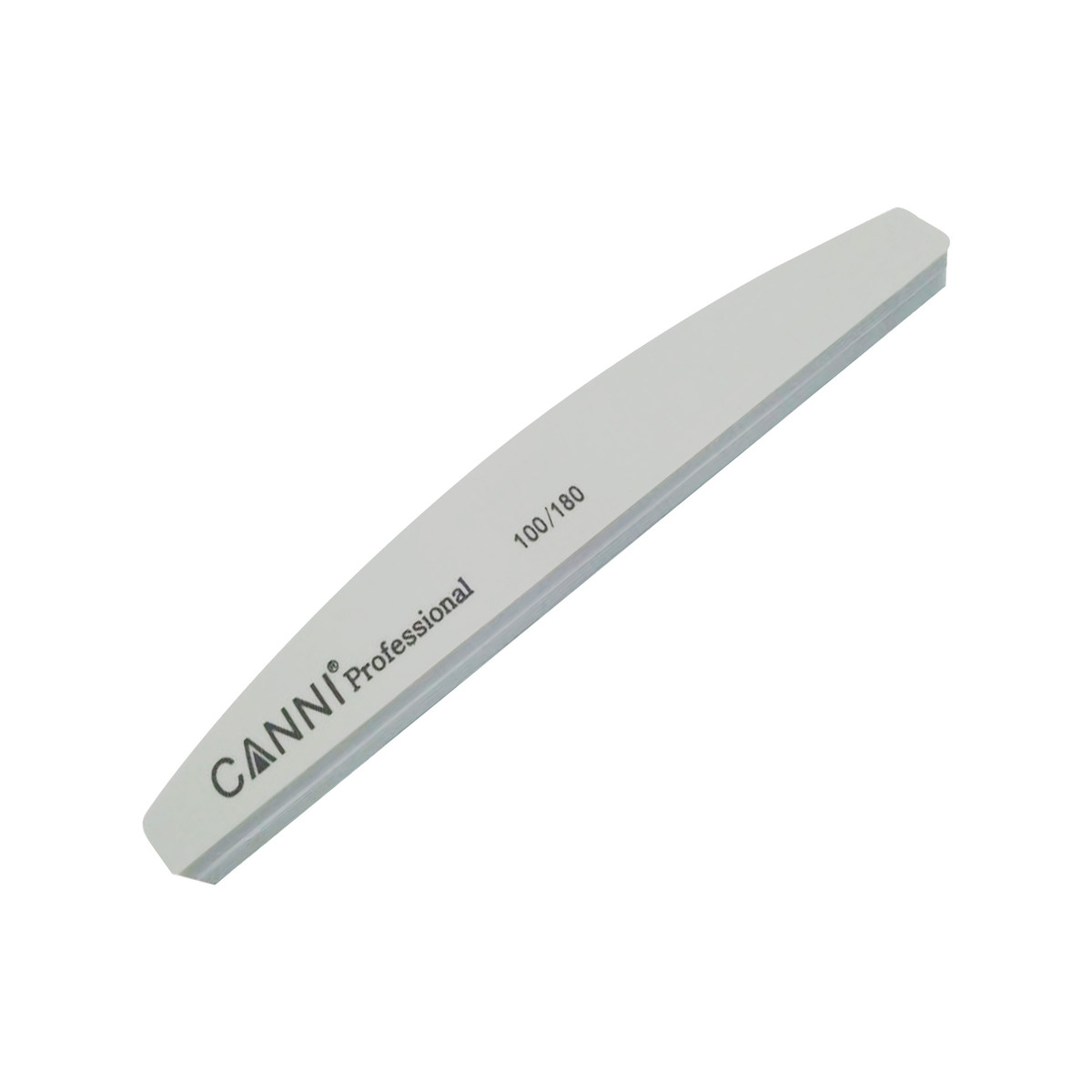 Полукруглая пилочка-шлифовщик 100/180 серого цвета CANNI– специальный инструмент для шлифовки и устранения неровностей поверхности ногтя, а также для удалений остатков искусственного материала.