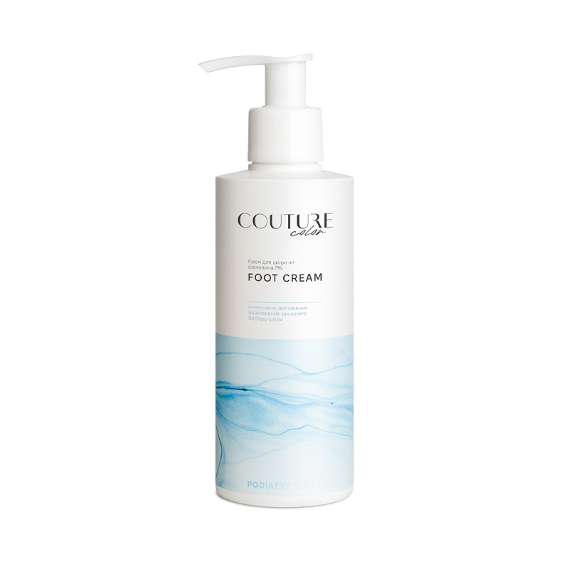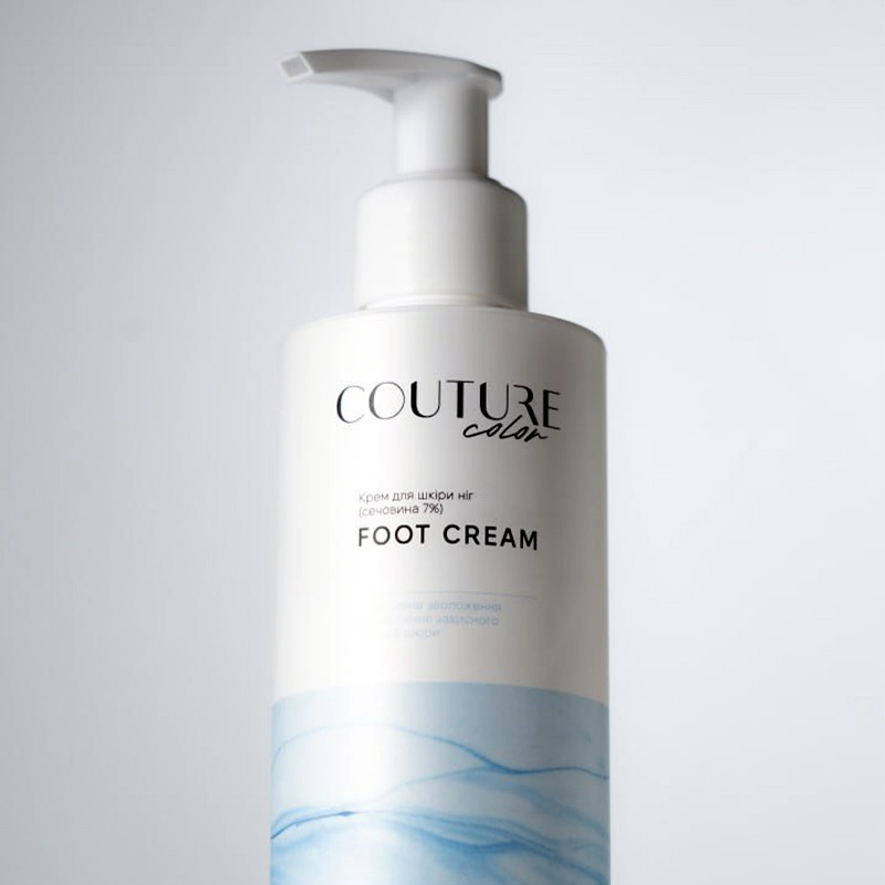 Couture Color Foot Cream - увлажняющий крем для ног с мочевиной 7%. Предназначен для ежедневного применения. Подходит для любой кожи, включая диабетическую. Эффективно увлажняет, смягчает и способствует восстановлению. Имеет высокоактивную формулу на основе 7% мочевины, растительных масел и увлажняющих компонентов, благодаря которой отлично устраняет сухость, шелушение, заживляет микротрещинки и повреждения. Подходит для кожи всех типов, включая чувствительную и диабетическую. Быстро впитывается без эффекта жирной пленки или липкости.