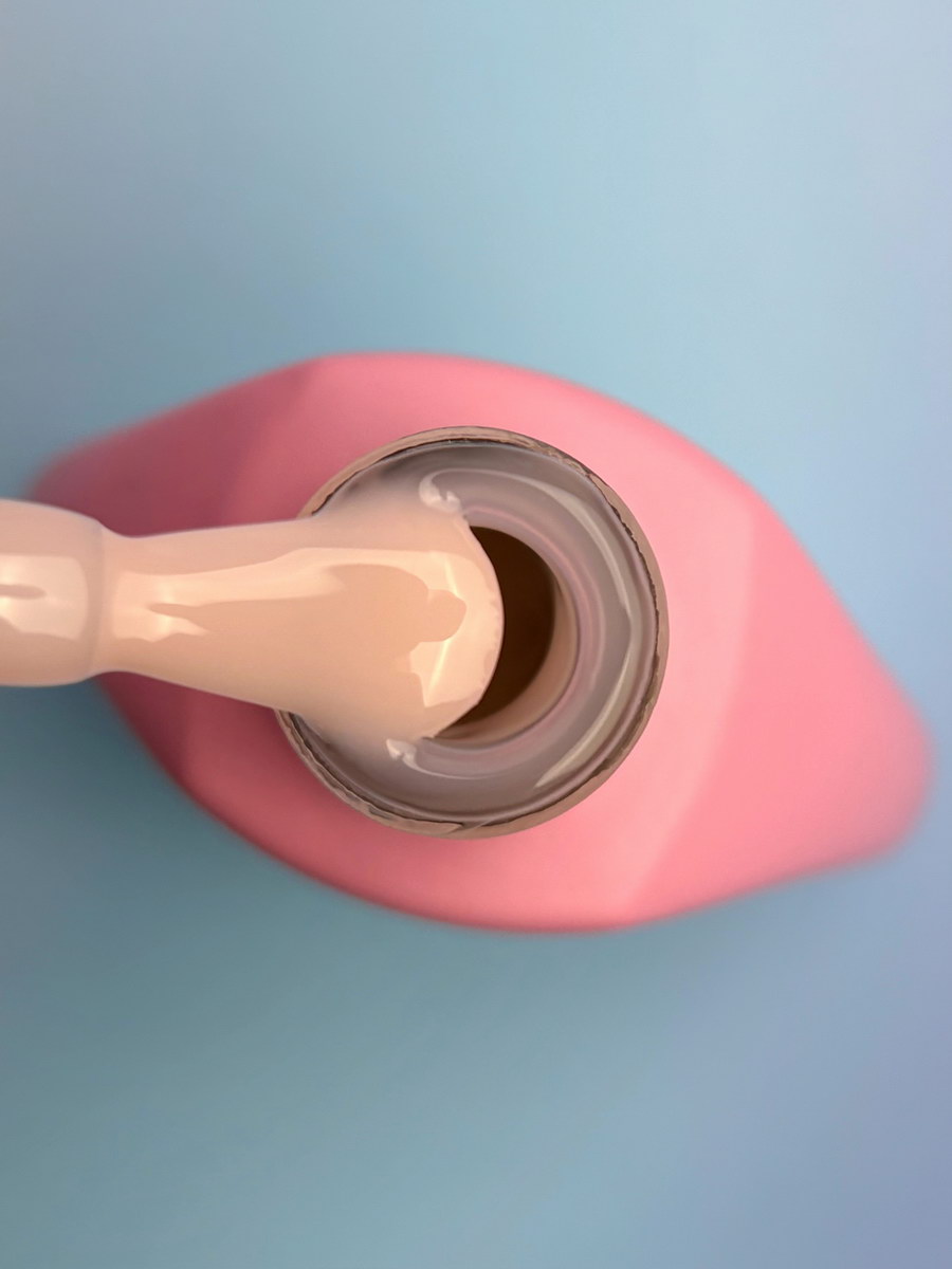 - Подкладку из Rubber Base лучше всего наносить плоской кистью для геля. Движения должны быть утирательными. Прорисовываем все пазухи ногтя и сушим в лампе 60 секунд.