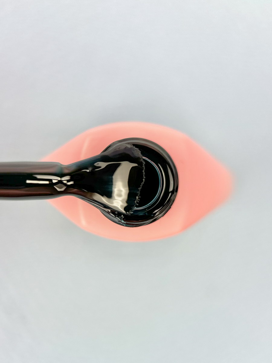 - Наносим гель-лак (1–2 тонких слоя). Набираем материал на кисточку, прорисовываем центр ногтя, а затем боковые стенки. Кисточкой для тонких линий подводим к кутикуле. Первый слой всегда должен ложиться полупрозрачно.