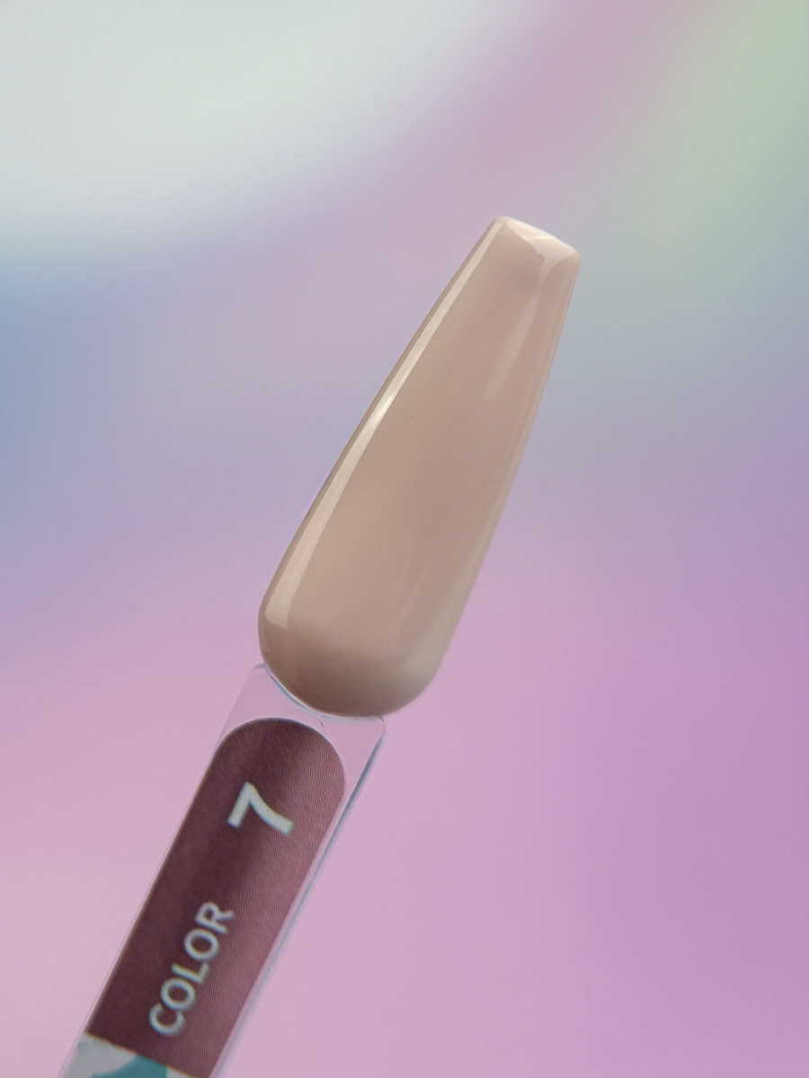 Гель-лак Color №7 – Идеально пигментированный гель-лак ложится как в один, так и в два тонких слоя. Он не образует полос при нанесении и легко самовыравнивается, имеет средне-густую консистенцию.
