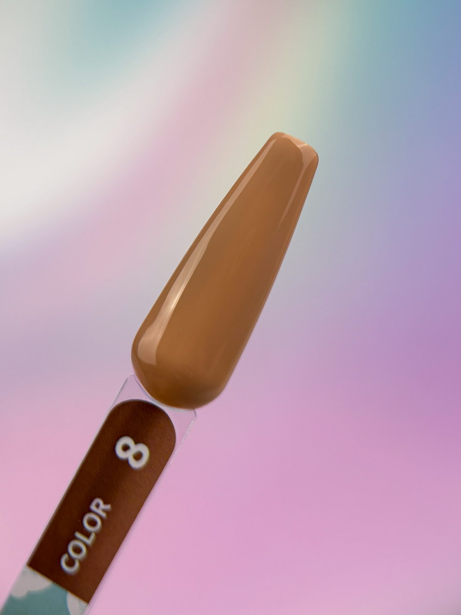 Гель-лак Color №8 – Идеально пигментированный гель-лак ложится как в один, так и в два тонких слоя. Он не образует полос при нанесении и легко самовыравнивается, имеет средне-густую консистенцию.