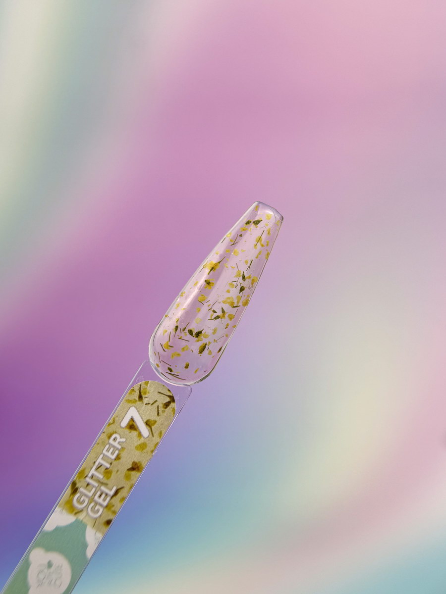 Glitter Gel №7 – прозрачный гель средней вязкости с сухоцветами.