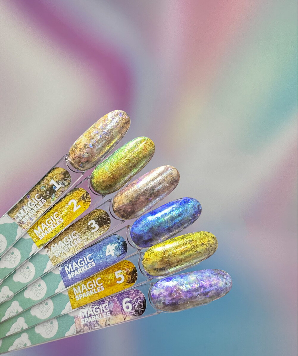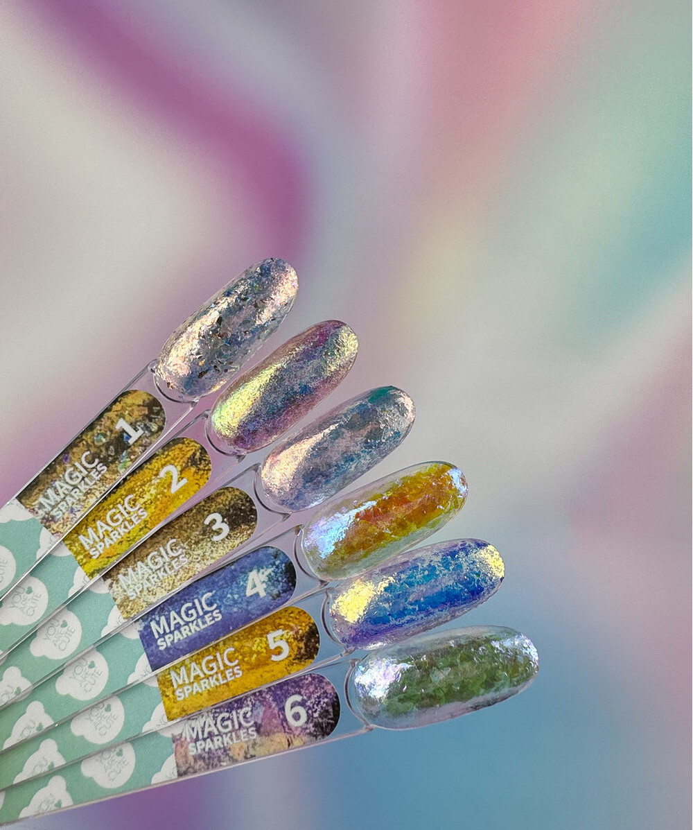 Сухие блестки Magic Sparkles – это тонкие хлопья хамелеоны, которые придают маникюру сияния и создают невероятно стильный дизайн.