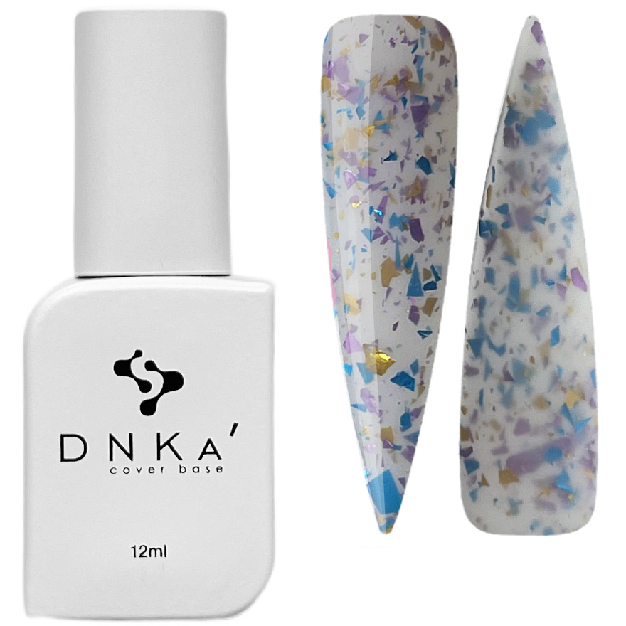 База цветная DNKa Cover №044 Funny Молочный с кусочками яркой фиолетовой, синей и золотой потальи, 12 мл.
