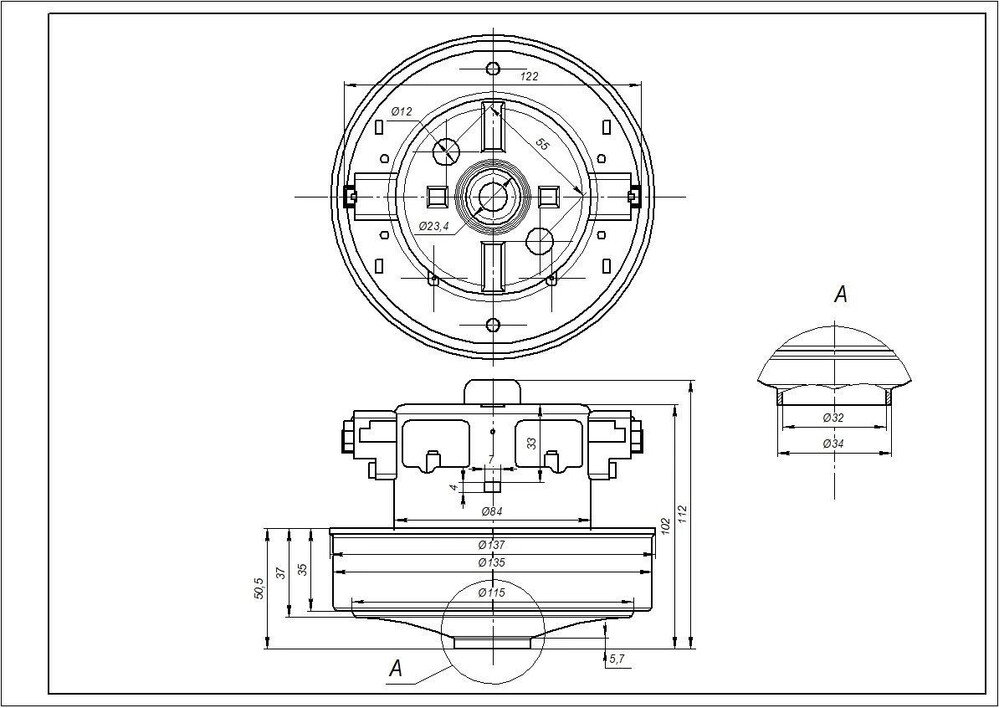 - Двигатель для пылесоса VAC031UN (с выступом) SKL D=134/84 mm H=35/101 mm 1400 W