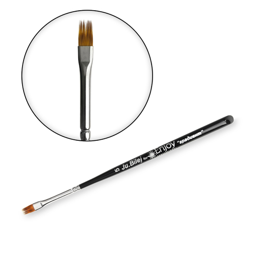 Кисть для омбре и градиентов Enjoy by Ju.Bilej Градиент #5Новинка для мастеров маникюра: эксклюзивные кисти Ju.Bilej от завода Roubloff, созданные специально для Enjoy Professional. Это авторская, запатентованная разработка мастера международного класса Юлии Билей. Кисти изготовлены из качественного ворса и древесины, служат долгие годы. Кисть Градиент #5 идеальна для работы в технике омбре, градиент и создании фона. Кисть изготовлена из синтетического ворса, который имитирует колонок, поэтому мастеру легко работать с гель-лаком или акриловой краской и контролировать материал при нанесении. Кончик кисти мягкий и длинный, ворсинки разной длины. Кистью легко растушевывать несколько цветов и растягивать пигмент. Благодаря необычной форме, кисточка поможет создавать объемные дизайны и абстрактные геометрические мазки.Кисть набита плотно, ворс не выпадает, не оставляет полосы, не набирает большое количество материала, что позволяет сделать работу более аккуратной. Ручка кисти изготовлена из дерева, не скользит и удобно лежит в руке.Длина ворса: 9 мм