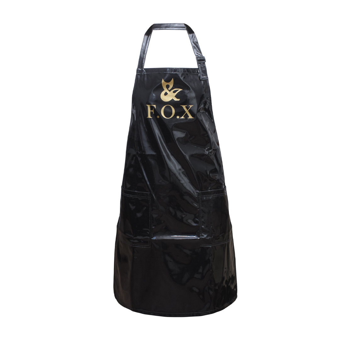 Фартук F.O.X – универсальный фартук для мастера маникюра черного цвета с логотипом торговой марки.