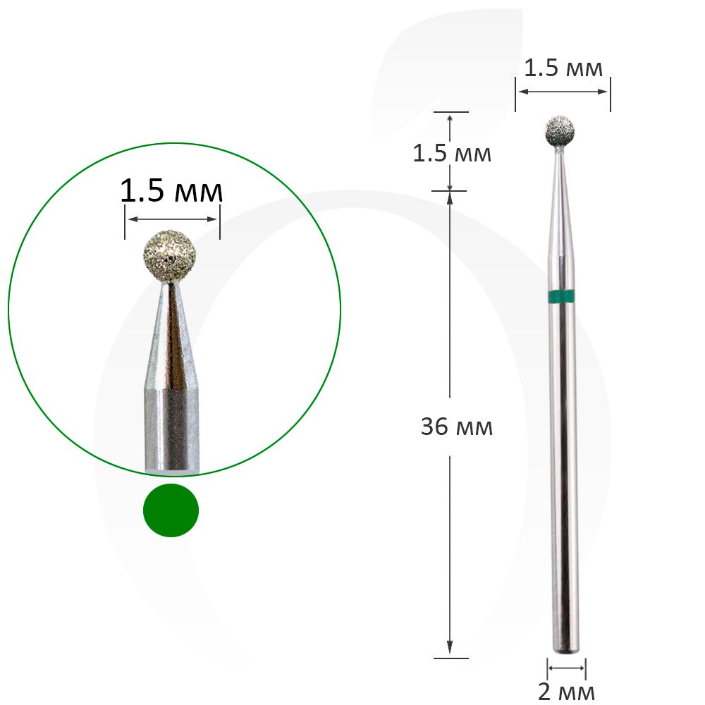 Фреза алмазная шар зеленая, диаметр 1.5 мм