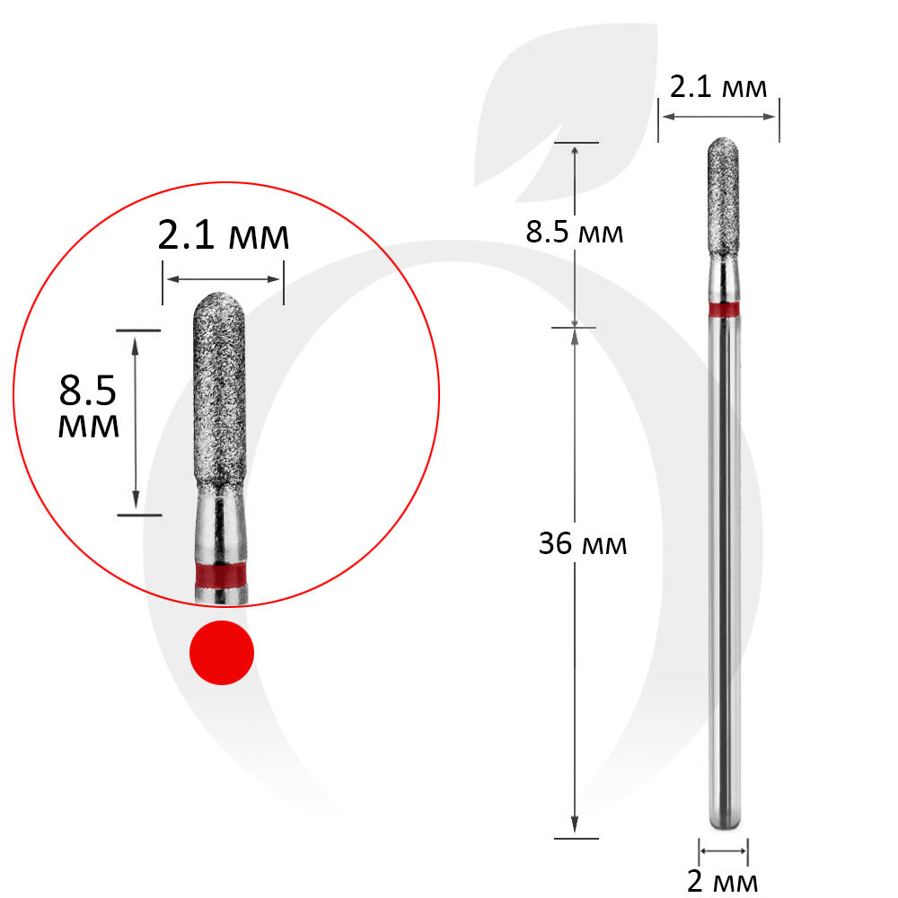 Фреза алмазная закругленный цилиндр красная 2.1 мм, рабочая часть 8.5 мм (A25)