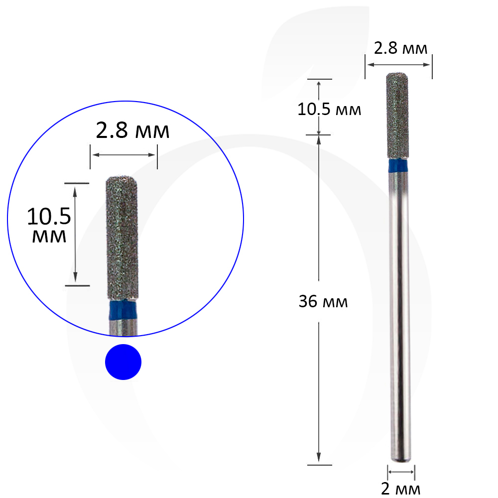 Фреза алмазная цилиндр закругленный синяя 2.8 мм, рабочая часть 10.5 мм
