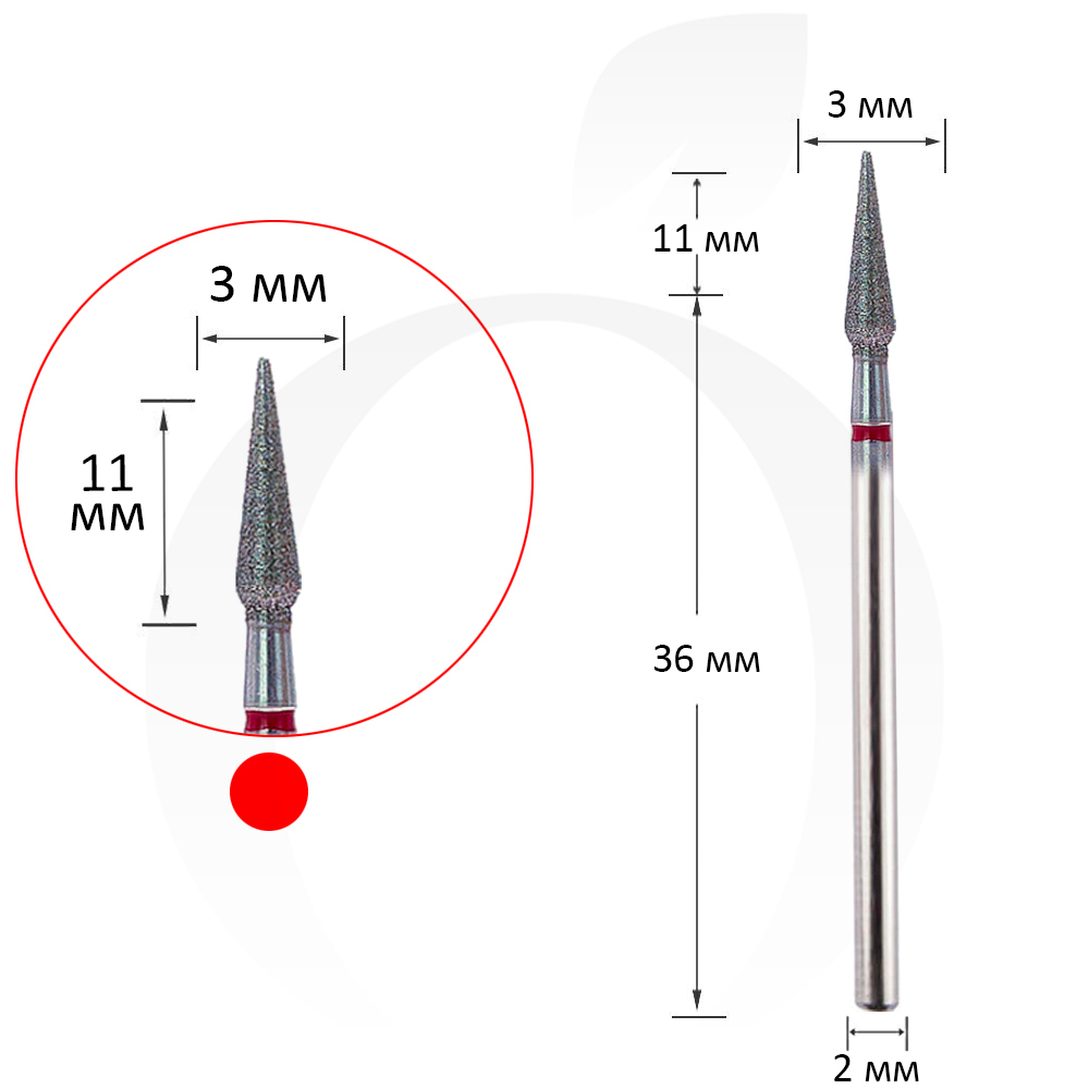 Фреза алмазная конус красная 3 мм, рабочая часть 11 мм