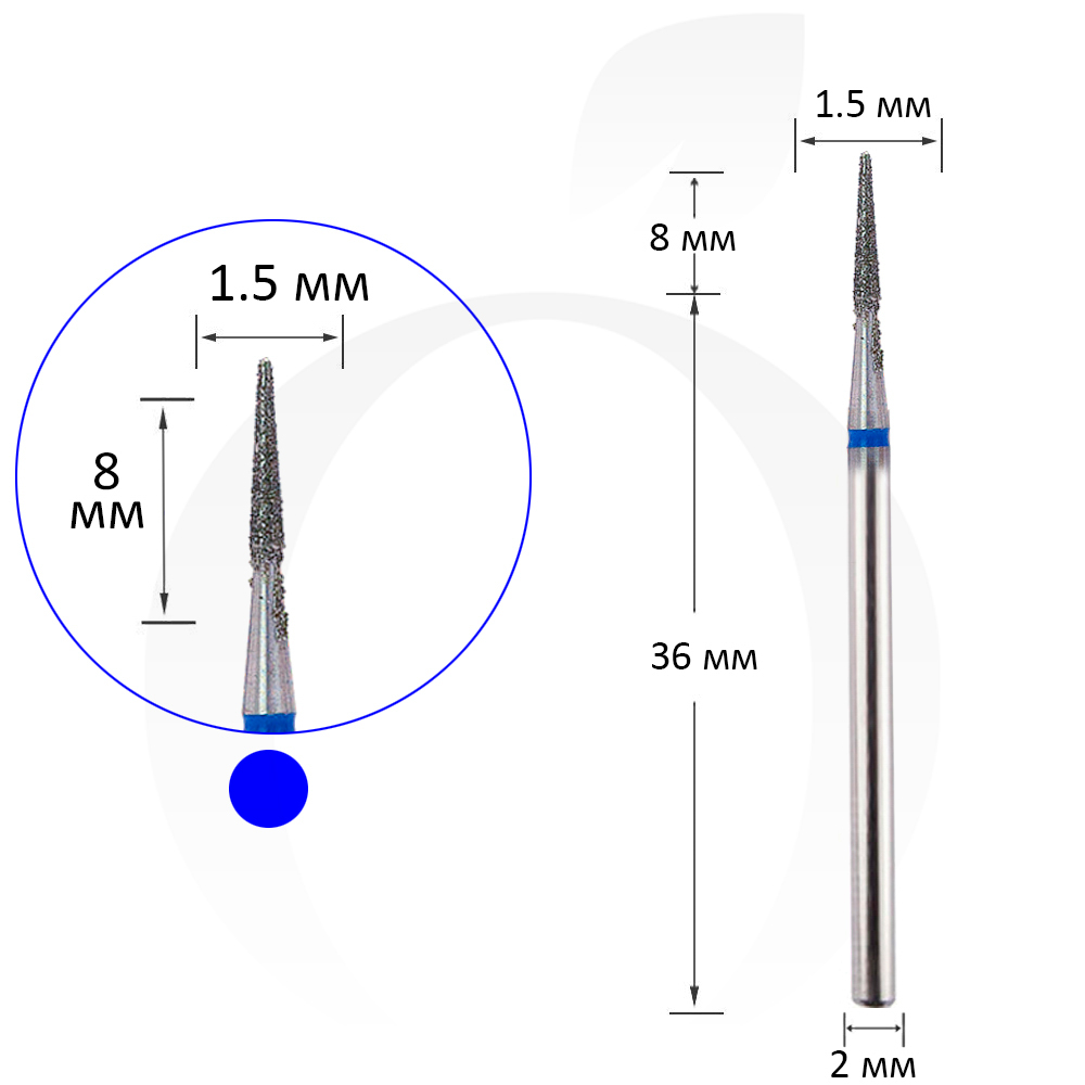 Фреза алмазная конус синяя 1.5 мм, рабочая часть 8 мм