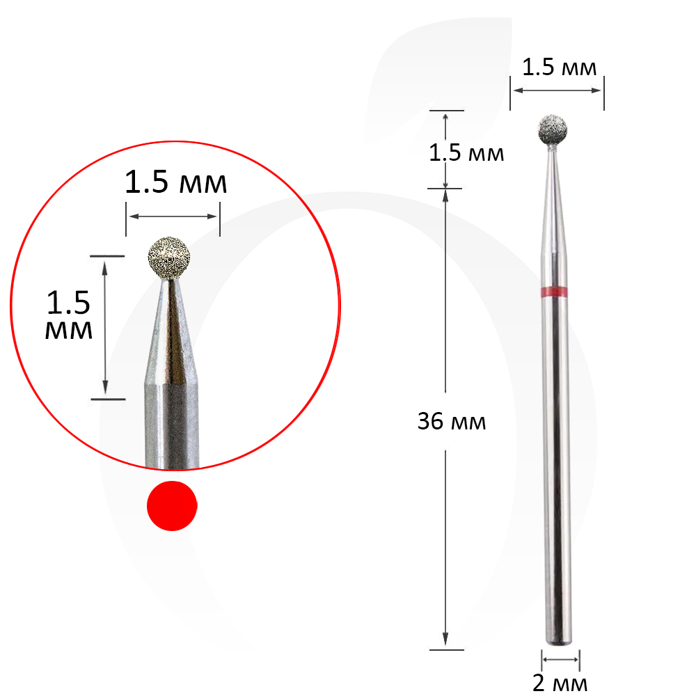 Фреза алмазная шар красная, диаметр 1.5 мм