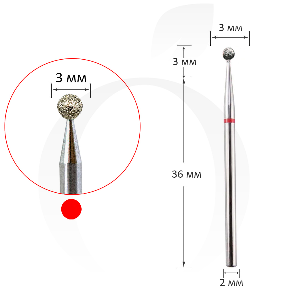 Фреза алмазная шар красная, диаметр 3 мм