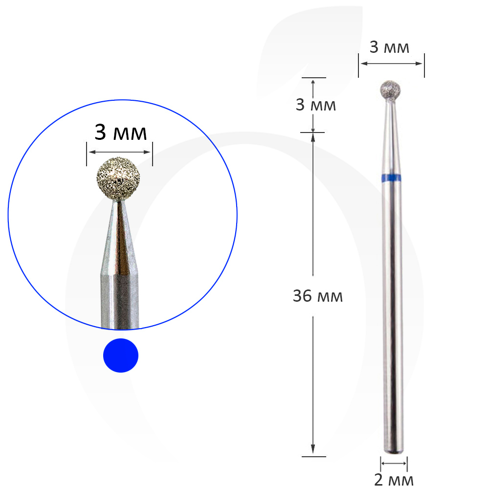 Фреза алмазная шар синяя, диаметр 3 мм