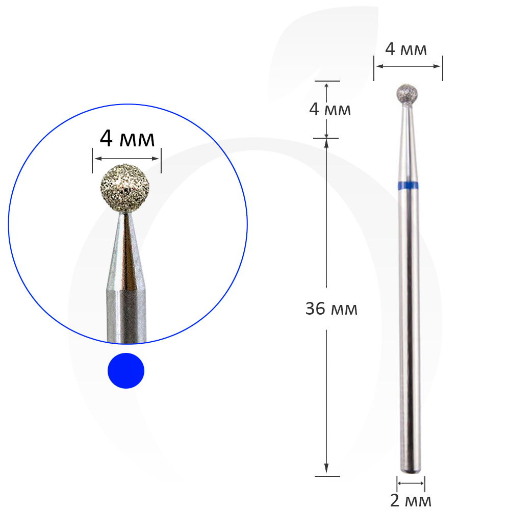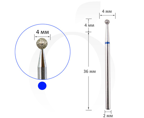 Фреза алмазная шар синяя, диаметр 4 мм