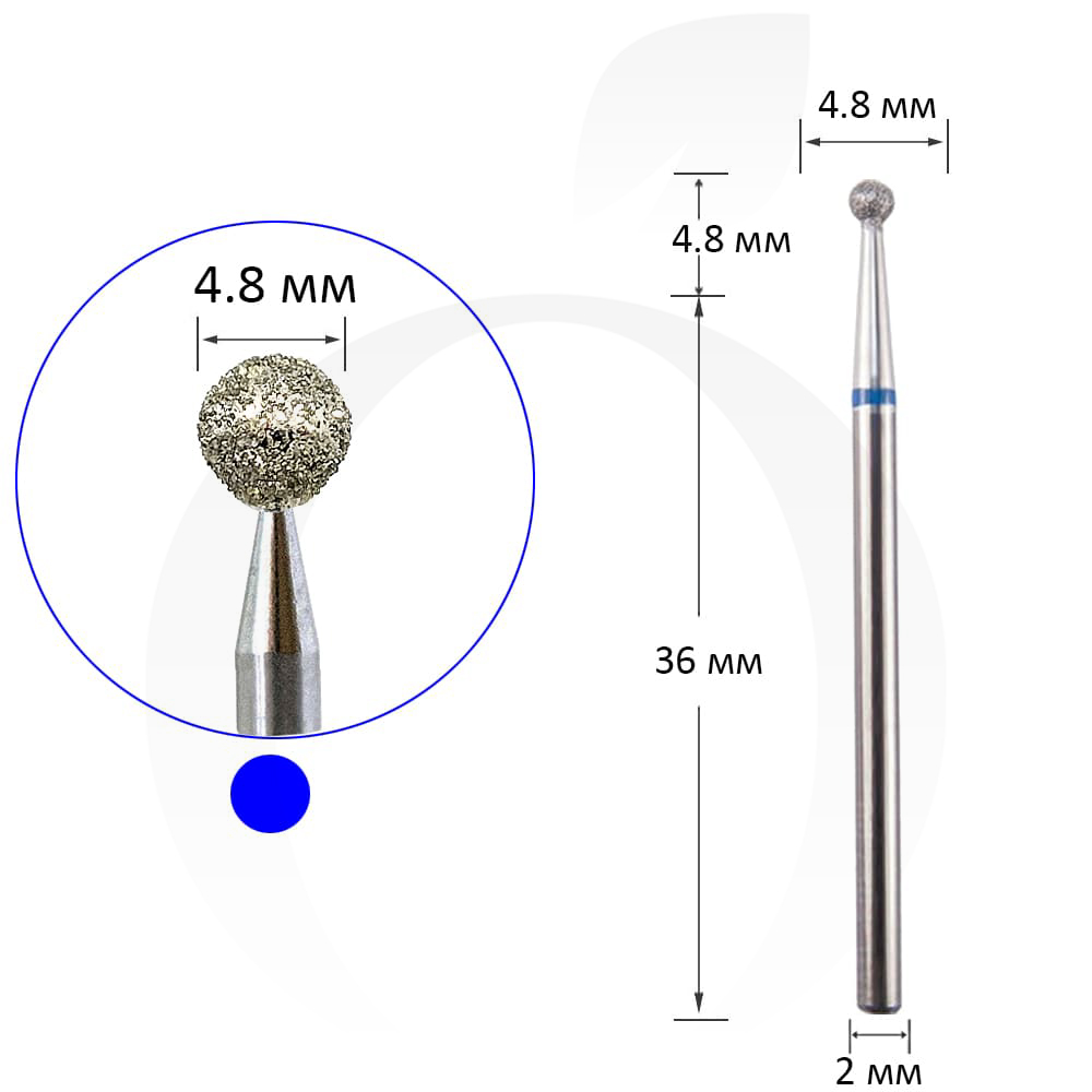 Фреза алмазная шар синяя, диаметр 4.8 мм