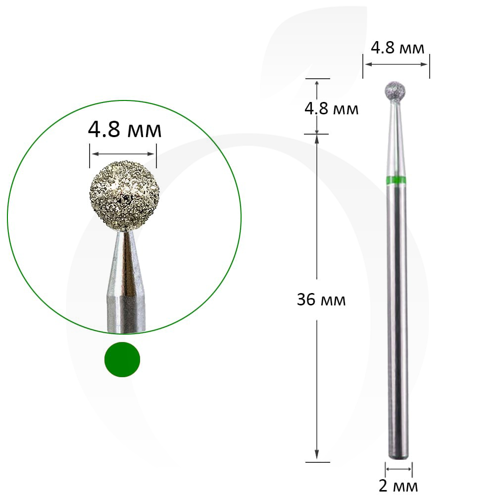 Фреза алмазная шар зеленая, диаметр 4.8 мм