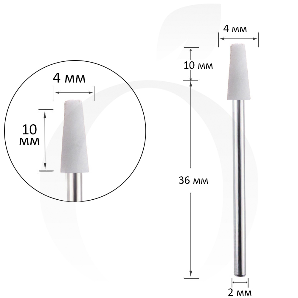 Фреза для маникюра корундовая конус белая 4 мм, рабочая часть 10 мм