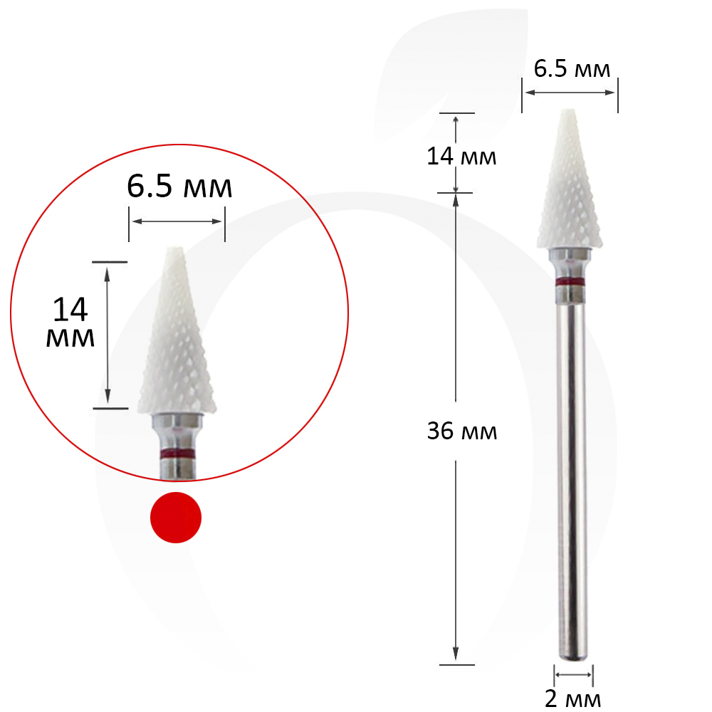 Купить Фреза керамическая конус острый красная 6.5 мм, рабочая часть 14 мм,, вы сможете в нашем интернет магазине limonad с доставкой по всей Украине в том числе и Киев, Днепр, Одесса, Харьков, Запорожье, Одесса, Львов и многие другие населенные пункты.