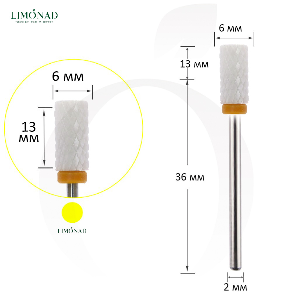 Купить Фреза керамическая цилиндр желтая 6 мм, рабочая часть 13 мм,, вы сможете в нашем интернет магазине limonad с доставкой по всей Украине в том числе и Киев, Днепр, Одесса, Харьков, Запорожье, Одесса, Львов и многие другие населенные пункты.