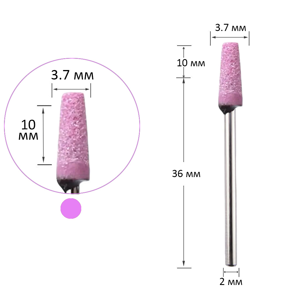 Фреза для маникюра корундовая конус W1 розовая 3.7/10 мм