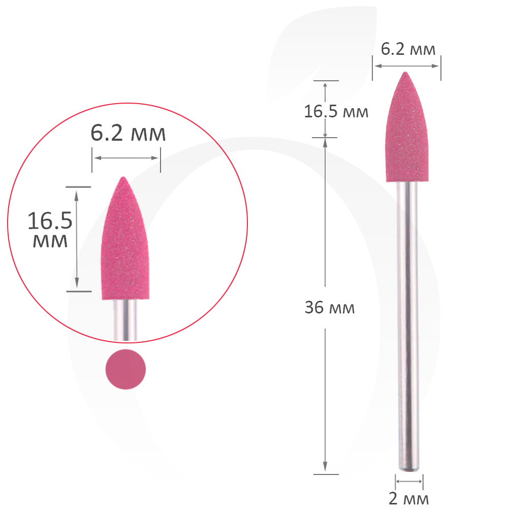 Фреза силиконовая маленькая 6.2 мм, рабочая часть 16.5 мм, розовая