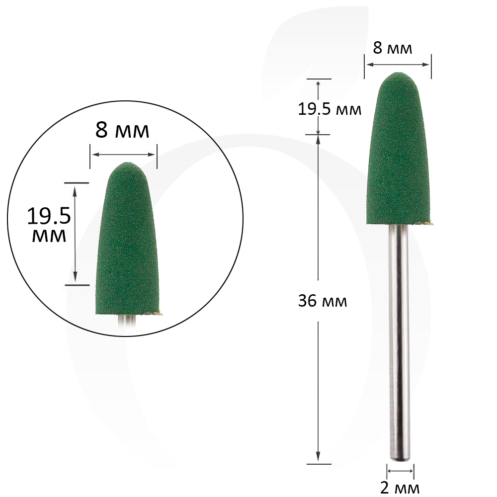 Фреза силиконовая 8 мм, рабочая часть 19.5 мм, зеленая