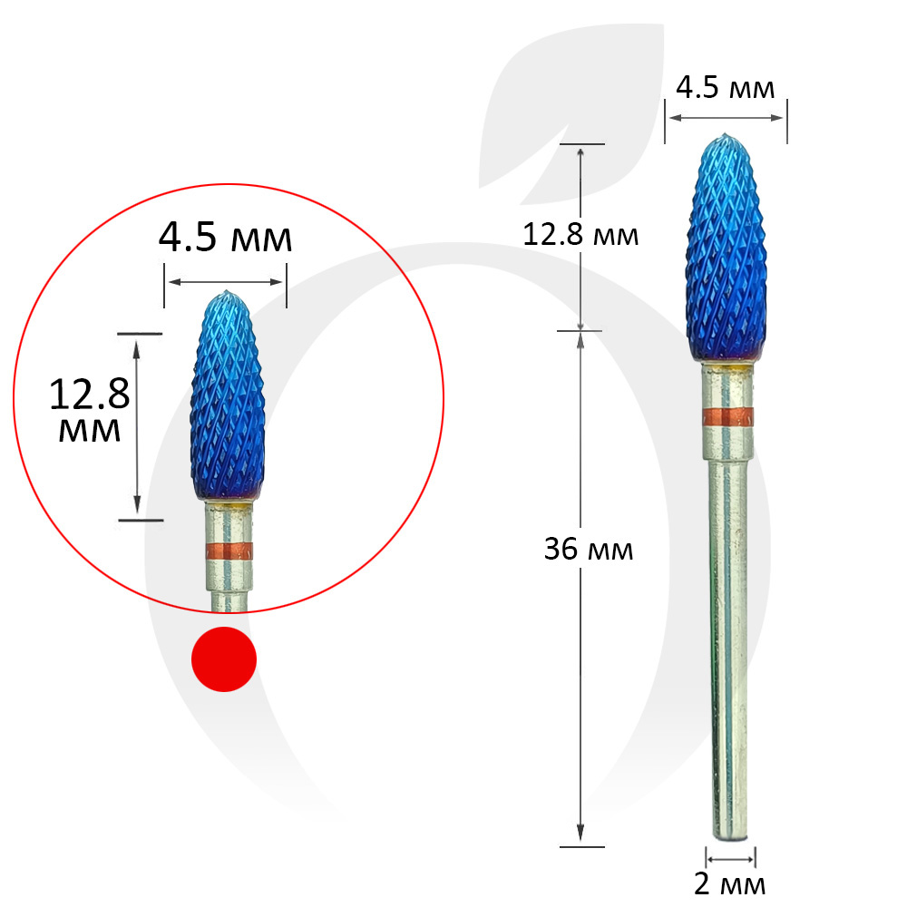 Фреза твердосплавная пуля каленая красная 4.5 мм, рабочая часть 12.8 мм