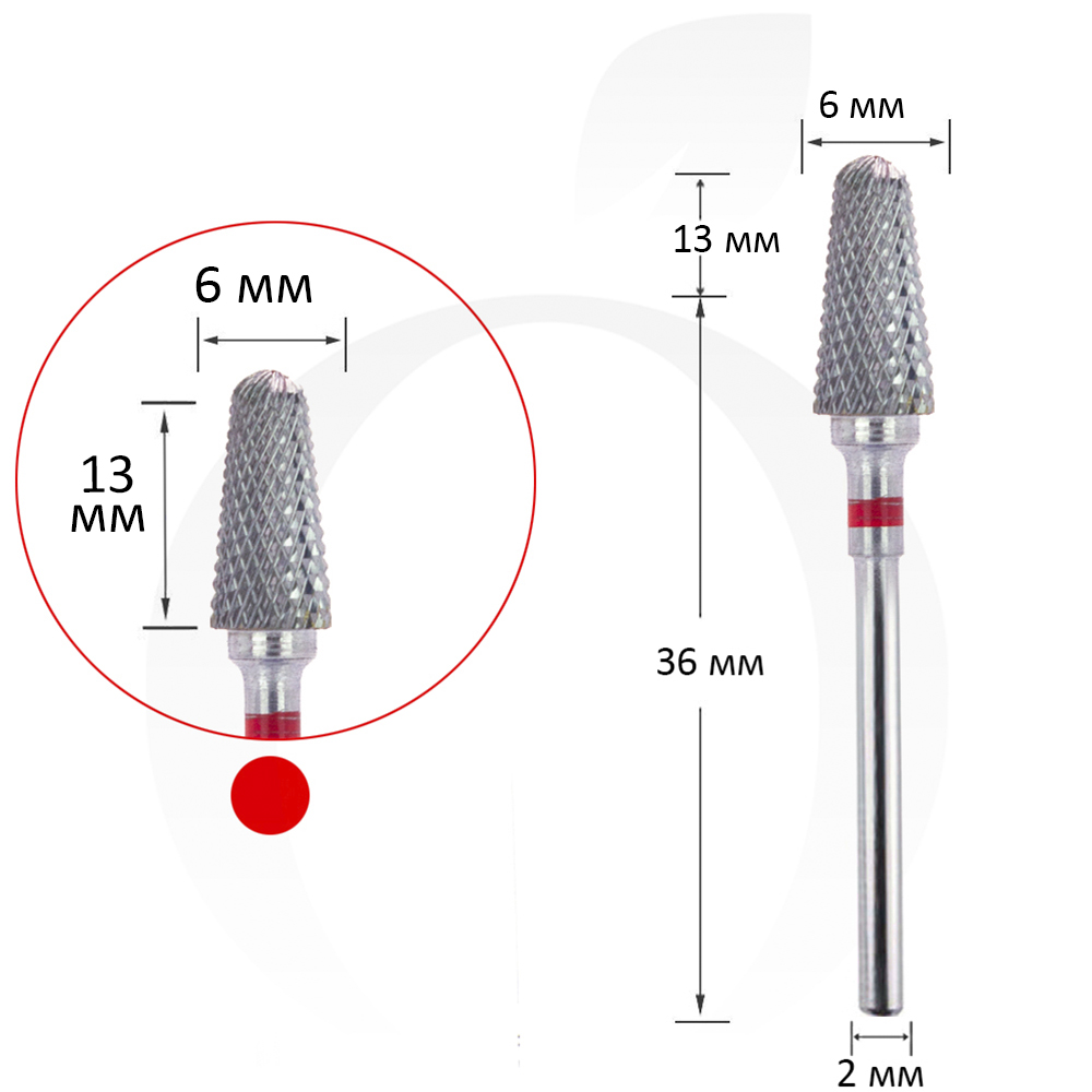 Фреза твердосплавная конус красная 6 мм, рабочая часть 13 мм