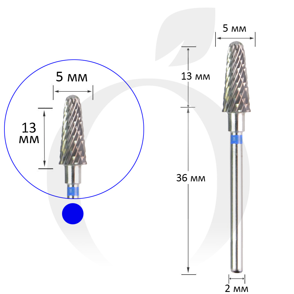 Фреза твердосплавная конус синяя 5 мм, рабочая часть 13 мм