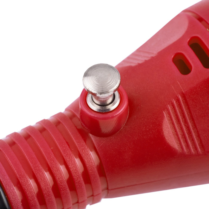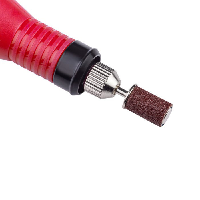 Ручка достаточно легкая, удобно лежит в руке. Она также защищена от перегрева за счет функции обдувки, что гарантирует продолжительность работы. Тип зажима автоматический, удерживает насадку и фиксирует фрезу, но вызывает вибрацию и быстро изнашивается.